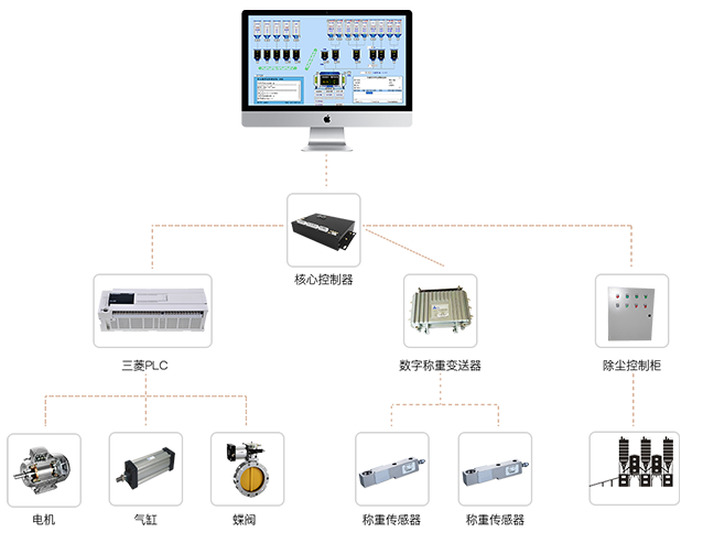 4位高精度數(shù)字稱重變送器進行秤信號采集與轉(zhuǎn)換;
