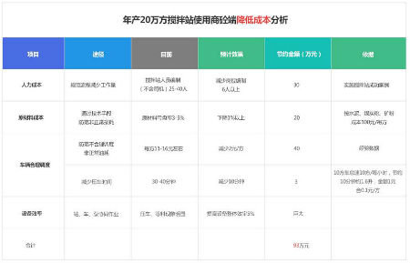 采用砼友商砼端后,為企業(yè)降低成本節(jié)約資金93萬元。其中,通過規(guī)范流程,減少工作量,規(guī)范車輛調(diào)度,對原材料非正常損耗進行技術(shù)防范,節(jié)約人力成本30萬、車輛調(diào)度費用43萬、原材料成本20萬。