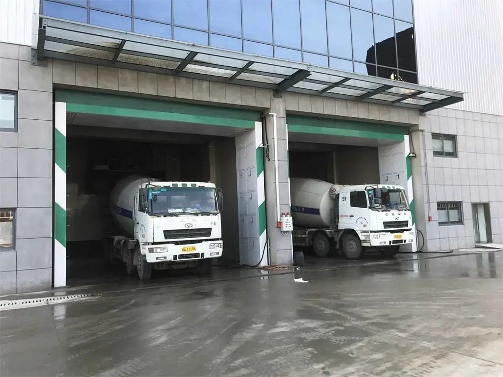卸料口洗車機安裝在下料口門口,系統(tǒng)側(cè)面采用搖擺式水刀結(jié)構(gòu),能夠進行全車沖洗,頂部設(shè)置有頂噴,地面設(shè)置有底盤沖洗。該洗車機不需要占用攪拌站額外場地,適合場地較小的客戶。