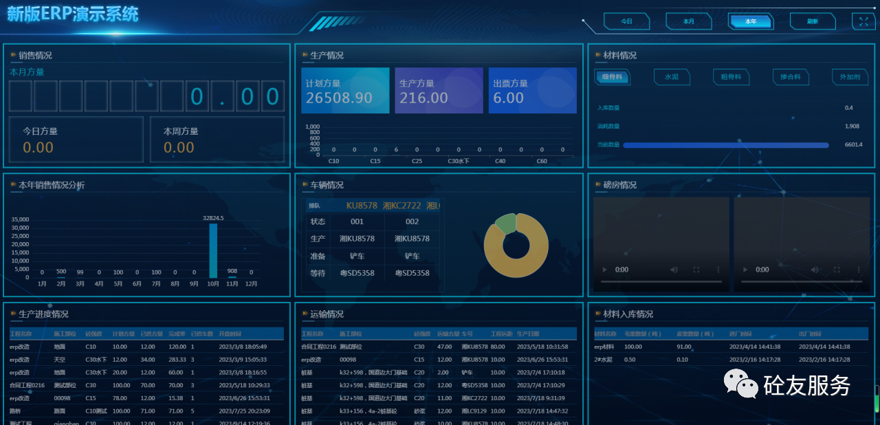 數(shù)字化時代,數(shù)據(jù)具有重要作用,數(shù)據(jù)看板是企業(yè)集中展示窗口,能夠?qū)⑵髽I(yè)的數(shù)據(jù)以圖表、圖形等形式展示出來,幫助企業(yè)更好地理解和分析數(shù)據(jù),從而做出更明智的決策。砼友ERP系統(tǒng)的大屏看板就是如此。