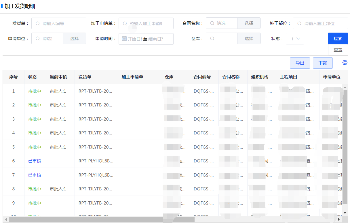 根據(jù)實(shí)際加工情況進(jìn)行線上加工訂單審核和下發(fā),加工進(jìn)度實(shí)時(shí)了解。通過(guò)鋼筋加工制單時(shí)間、發(fā)貨時(shí)間、鋼筋發(fā)料數(shù)量等操作規(guī)范了項(xiàng)目鋼筋加工生產(chǎn)的流程,明確了責(zé)任范圍,細(xì)化了操作標(biāo)準(zhǔn),提高了生產(chǎn)領(lǐng)用效率。